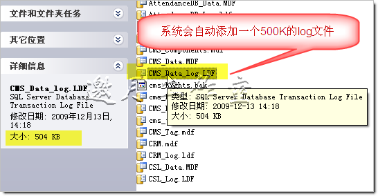 2.删除log文件。 - 附加数据库,选移除log文件,此时SQL Server 会自动重新建立一个512K 的Log 文件。